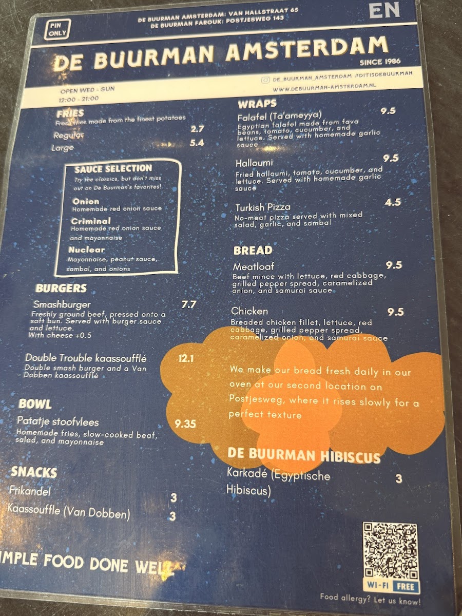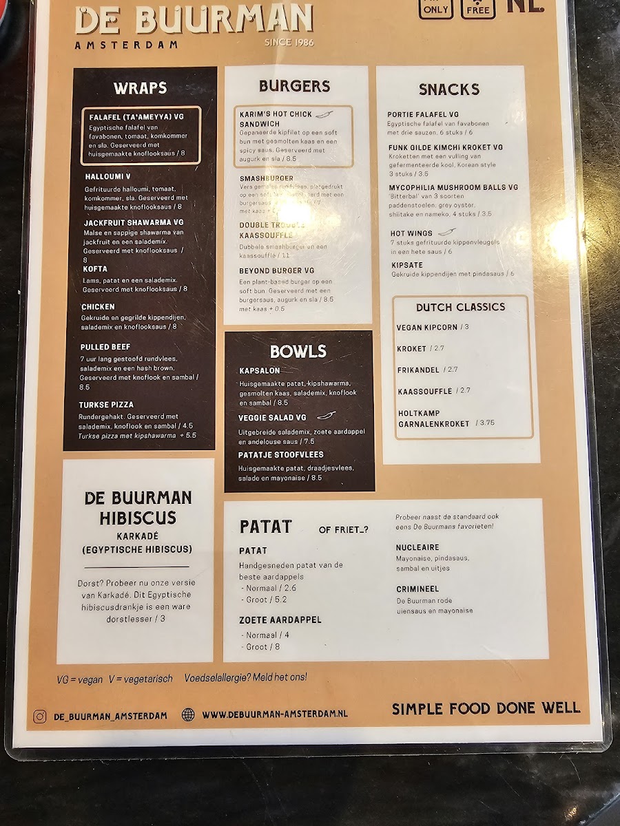 Welcome to De Buurman, a hidden gem nestled in Amsterdam's Van Hallstraat. This trendy snack bar beckons with a warm atmosphere, modern decor, and an irresistible smile from its staff. As you step inside, you're greeted by melodic tunes that set the perfect backdrop for a delightful meal.